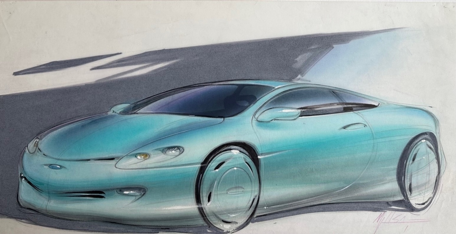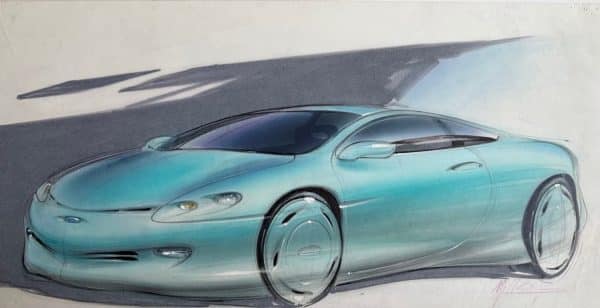 We are presenting for sale an original DEREK MILLSAP colored marker drawing entitled FORD PROBE (TEAL) done in 1994. This drawing is one that Derek did as a car designer while employed by Concept Center California for the Ford Motor Company. These drawings were done for the early design phase of the particular carline listed above.
