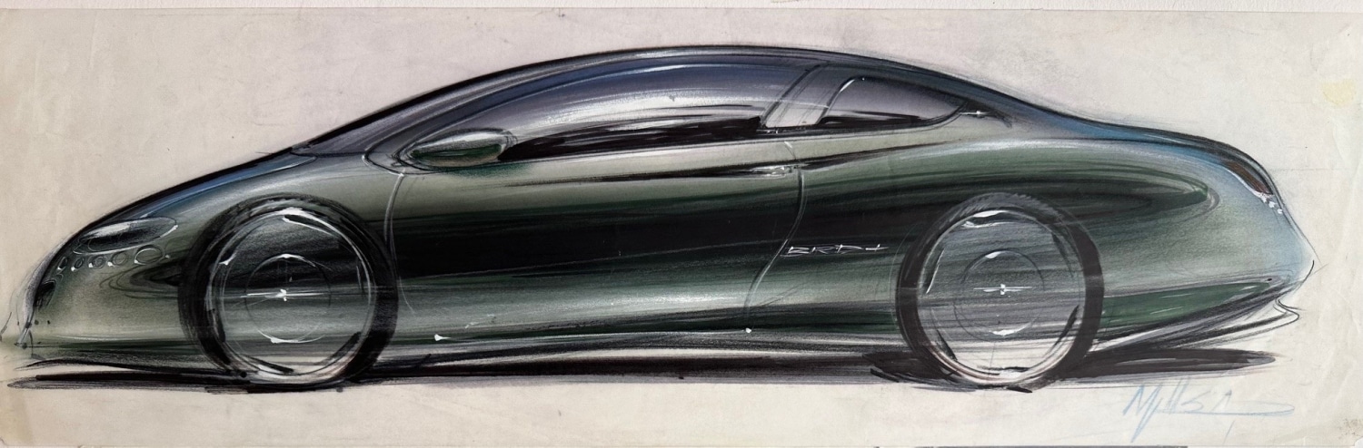 We are presenting for sale an original DEREK MILLSAP colored marker drawing entitled FORD THUNDERBIRD #1 (BLACK) done in 1993. This drawing is one that Derek did as a car designer while employed by Concept Center California for the Ford Motor Company. These drawings were done for the early design phase of the particular carline listed above.