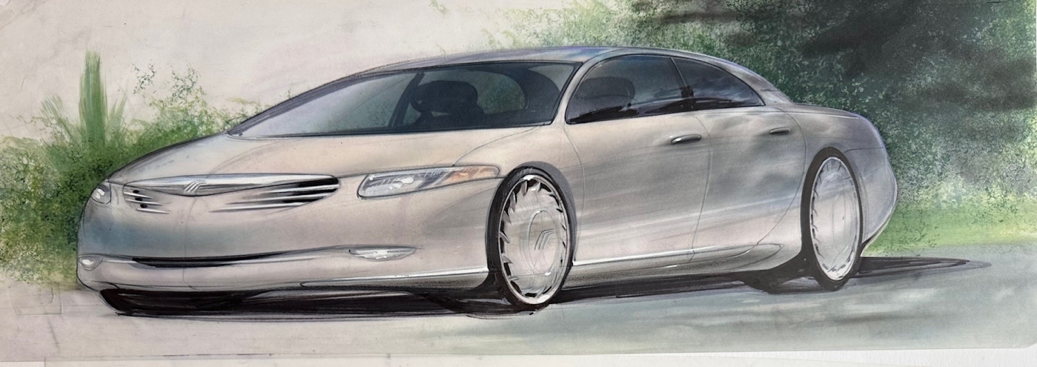 We are presenting for sale an original DEREK MILLSAP colored marker drawing entitled MERCURY COUGAR (SILVER) done in 1994. This drawing is one that Derek did as a car designer while employed by Concept Center California for the Ford Motor Company. These drawings were done for the early design phase of the particular carline listed above.