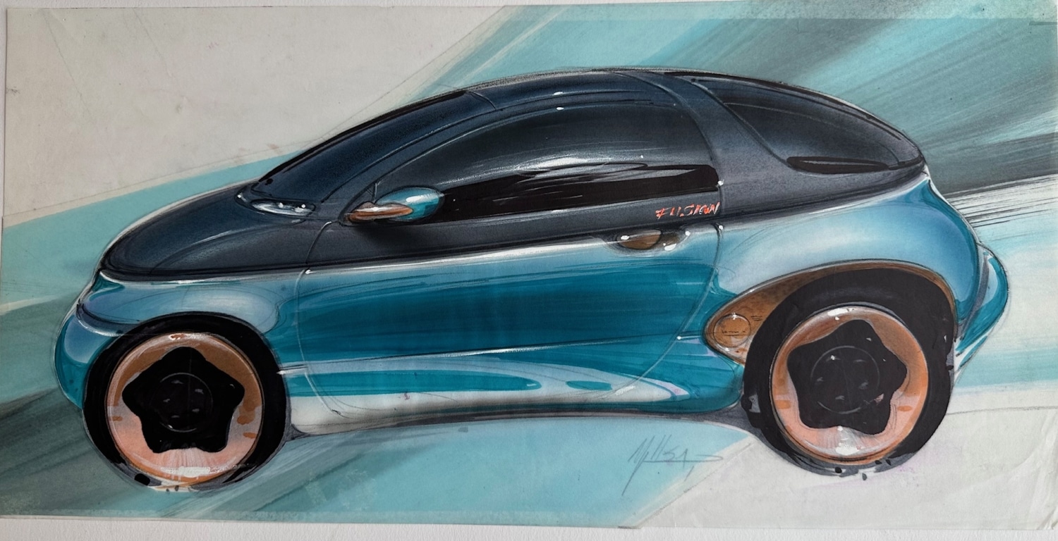We are presenting for sale an original DEREK MILLSAP colored marker drawing entitled MERCURY FUSION (TEAL) done in 1996. This drawing is one that Derek did as a car designer while employed by Concept Center California for the Ford Motor Company. These drawings were done for the early design phase of the particular carline listed above.