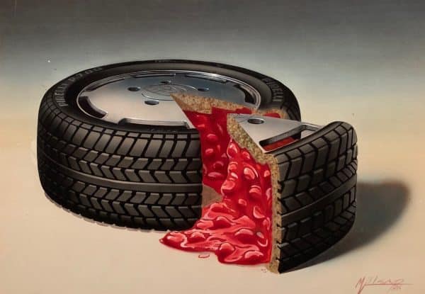 We are presenting for sale an original DEREK MILLSAP gauche painting entitled PORSCHE 928 WHEEL done in 1986. This painting was done as an experiment using two distinctly opposite objects that have something in common.