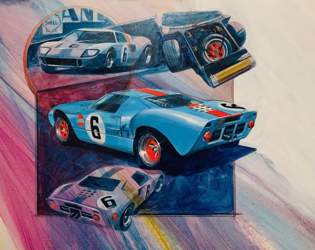DEREK MILLSAP PAINTING FORD GT40 GULF LIVERY 1985